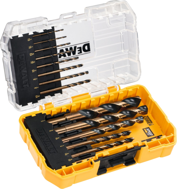 Boor met de DeWalt 14-delige Black & Gold Metaalboren Set Tough Case gemakkelijk gaten in verschillende metalen. Denk bijvoorbeeld aan (roestvrij) staal of aluminium. De boren in deze set hebben een doorsnede tussen de 1 en 8 millimeter. Ook krijg je een handige DeWalt Tough Case. Heb je 2 of meer Tough Cases? Dan stapel je deze op elkaar, zodat je al jouw boren gemakkelijk meeneemt.