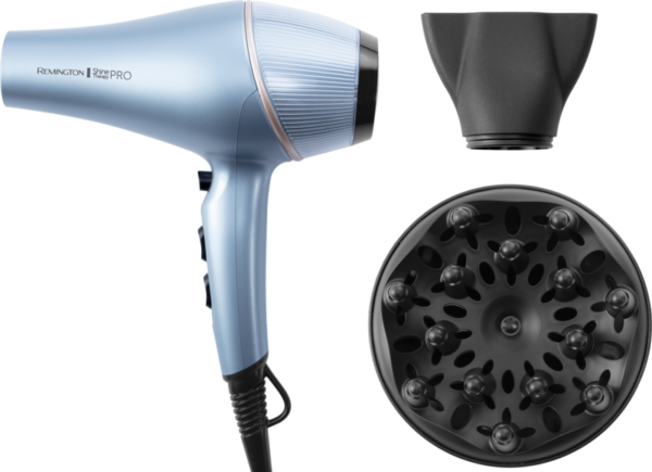 Met de Remington Shine Therapy PRO 2200 AC9300 zorg je voor een droog en glanzend kapsel. De föhn heeft namelijk een ionische technologie met arganolie. Dit zorgt voor een glad kapsel met meer glans. De ingebouwde sensoren zorgen voor een constante temperatuur en een gelijkmatige hitteverspreiding. Hierdoor is de kans klein dat je haar beschadigt door de hitte. Je droogt je haar snel dankzij het krachtige vermogen van 2.200 watt. Heb je dun haar of juist dik haar? Dan kies je met de 3 temperatuurstanden zelf een geschikte stand. Met de diffuser droog je jouw krullen en zorg je voor meer volume. Door het 3 meter lange snoer heb je veel bewegingsvrijheid.