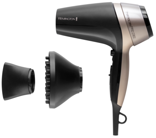 Met de Remington Thermacare PRO 2300 D5715 droog je gemakkelijk je haar dankzij het lichte gewicht. Doordat de föhn licht van gewicht is, krijg je minder snel een vermoeide arm. De haardroger heeft een krachtige motor van 2.300 watt. Zo droog je snel je haar. Je kiest uit 3 temperatuur- en 2 blaasstanden. Hiermee pas je de stand aan op je haartype. Door de ionische technologie heb je geen last van pluizig haar tijdens het drogen. Je krijgt er een diffuser bij. Hiermee droog je krullend haar en zorg je voor meer volume. De keramische technologie beschermt je haar tegen de hitte. Zo beschadigt je haar niet.