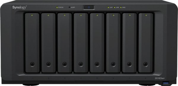 Met de Synology DS1823xs+ maak je een krachtige server met een grote opslagcapaciteit voor op kantoor. Deze Synology NAS heeft ruimte voor 8 harde schijven, waarmee je een totale opslag van 144 terabyte bouwt. Dit maakt de NAS geschikt voor zwaar gebruik, waaronder het maken van backups. Schakel bijvoorbeeld RAID-0, RAID-1, RAID-5 of RAID-10 in of wissel gemakkelijk tussen opstellingen met de grote ruimte voor harde schijven. Daarnaast bouw je ook een snel cachegeheugen met ruimte voor 2 M.2 SSD’s. Hiermee start je veelgebruikte programma’s of bestanden sneller op, en verwerk je commando’s nog sneller. Door de combinatie van 8 gigabyte RAM en de AMD Ryzen V1780B quad core processor, werk je met een klein kantoor tegelijk op de server van deze NAS. Taken en commando’s verwerk je snel, waardoor je gemakkelijk doorwerkt. Daarnaast is het RAM geheugen uitbreidbaar tot 32 gigabyte, voor wanneer je nog een extra boost wilt. Wil je een extra krachtige internetverbinding? Geen punt, door de 4 ethernetpoorten biedt de DS1823xs+ extra zekerheid wanneer een van je poorten uitvalt. Een van deze poorten heeft een snelheid van 10 GbE, waarmee je een razendsnelle internetverbinding maakt. Net zoals bij alle Synology NAS modellen maak je ook bij de DS1823xs+ gebruik van Synology Drive Server en bewerk je de opslagruimte van de NAS vanaf ieder aangesloten apparaat. Ideaal wanneer je een keer vanuit huis werkt en toch bij je bestanden wilt komen.