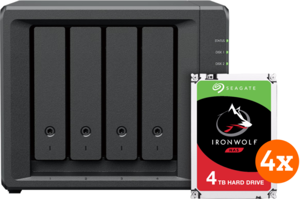 Bewaar al je bestanden en maak een krachtige server voor op kantoor met de Synology DS423+ + Seagate Ironwolf 16TB (4x4TB). Deze bundel bevat 4 Seagate Ironwolf harde schijven, met een totale opslagcapaciteit van 16 terabyte. Je plaatst de harde schijven in de NAS, waarmee je gemakkelijk een centrale opslagplek maakt. Stel bijvoorbeeld RAID-1 in, waarmee je een schijf apart gebruikt voor het maken van back-ups. Of denk aan RAID-5, waarmee je alle 4 de harde schijven gebruikt voor het bewaren, back-uppen en beveiligen van je documenten. Daarnaast plaats je 2 M.2 SSD’s voor een extra snel cachegeheugen, waarmee je veelgebruikte bestanden snel opent. Dit is handig wanneer je met veel mensen tegelijkertijd op de NAS werkt, zodat je zonder vertragingen verdergaat met je werk. Door de combinatie van 2 gigabyte RAM en de Intel J4125 quad core processor, werk je met meer dan 10 mensen tegelijk op de server van deze NAS. Taken en commando’s verwerk je snel, waardoor je gemakkelijk doorwerkt. Net zoals bij alle Synology NAS modellen maak je ook bij de DS423+ gebruik van Synology Drive Server en bewerk je de opslagruimte van de NAS vanaf ieder aangesloten apparaat. Ideaal wanneer je een keer vanuit huis werkt en toch bij je bestanden wilt komen. Deze bestanden bewaar je op de Seagate Ironwolf 4TB harde schijven. De Seagate IronWolf schijven hebben een gemiddelde rotatiesnelheid van 5.900 RPM. Hierdoor laad je bestanden extra snel vanaf de schijf, zonder haperingen. Daarnaast zorgt het 256 megabyte cachegeheugen ervoor dat je veelgebruikte bestanden snel opent. Je hebt met deze combinatie direct 16 terabyte aan opslag. Dit is genoeg voor zo’n 1.600 full hd films of 180.000 uur aan muziek. Dit product is inclusief Seagate Rescue Services voor 3 jaar gegevensherstel.